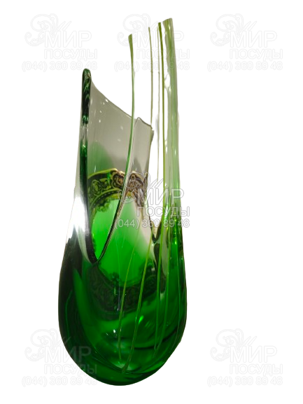 Ваза от чешского производителя изготовлена из стекла. Помимо изящно округой формы с вырезом, ваза обладает великолепным прозрачно-зеленым цветом, что превращает изделие в элегантное украшение интерьера. Толстые стенки вазы делают ее массивной, что придает интерьеру пышности и нарядности.