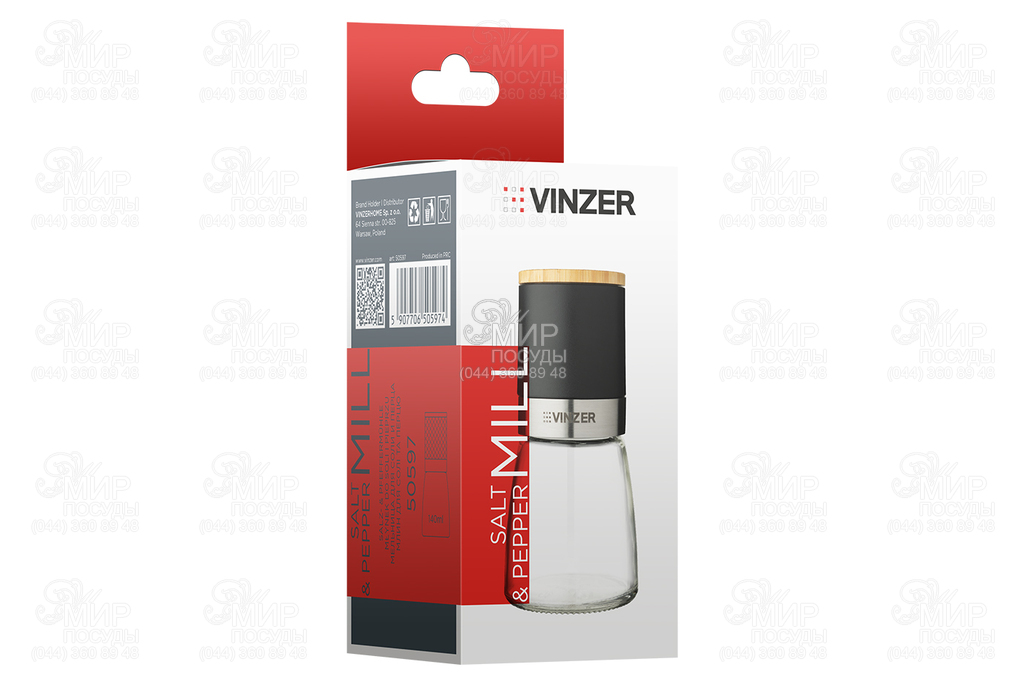 Мир посуды - Кухонные аксессуары - Мельницы для соли и перца - Мельница для соли или перца Vinzer 13,2см 50597