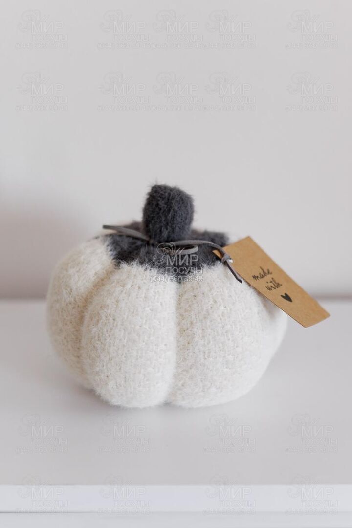 Мир посуды - Домашний интерьер - Декор для Хэллоуина - Декоративная тиква Happy Fall Pumpkin молочная с серым хвостиком 15см 4823093475304