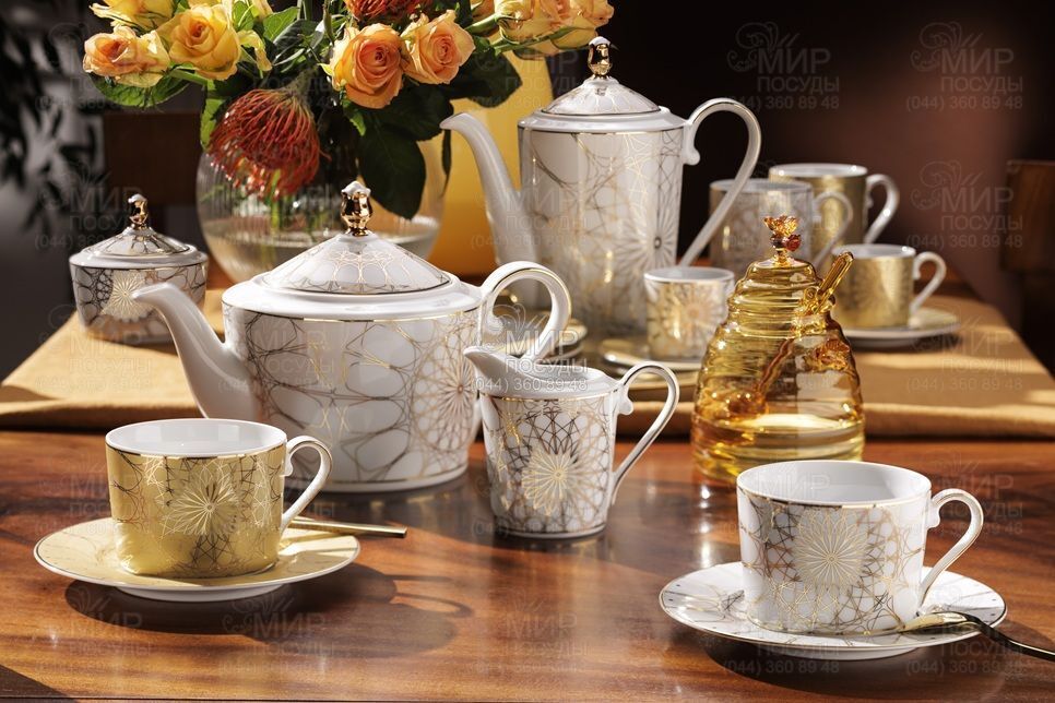 Серия Jenny Solaris в золоте от Cmielow – настоящая жемчужина, привносящая в сервировку гламур и тепло солнечного света. Вся фарфоровая поверхность глубокого, мерцающего золота, подчеркнутого выразительной сеткой геометрических линий. Этот завораживающий декор придаёт коллекции необыкновенную динамику. Ручная роспись золотом ещё больше подчёркивает изысканность и точность исполнения.