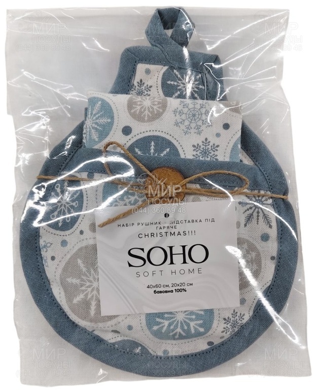 Полотенце и декоративная подставка под горячее от бренда Soho – это сочетание практичности, стиля и уюта. Полотенце изготовлено из 100% хлопка, мягкое на ощупь, хорошо впитывает влагу, быстро сохнет и сохраняет цвет после многократной стирки. Его можно использовать не только в качестве полотенца, но и в качестве сервировочной салфетки. Декоративная подставка под горячее дополняет набор, делая его отличным подарком для себя или близких. Она станет красивым и полезным элементом сервировки стола и придаст домашнего уюта Вашей кухне.