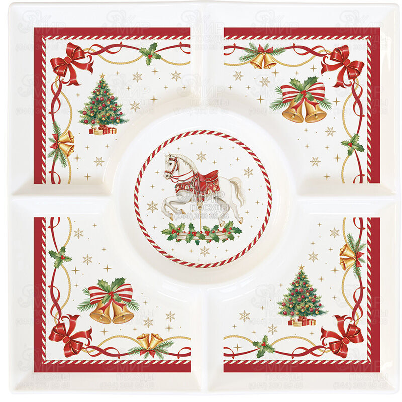 Мир посуды - Столовая посуда - Кабаретницы - Менажница Christmas Tale 25х25см R2095#CTAL