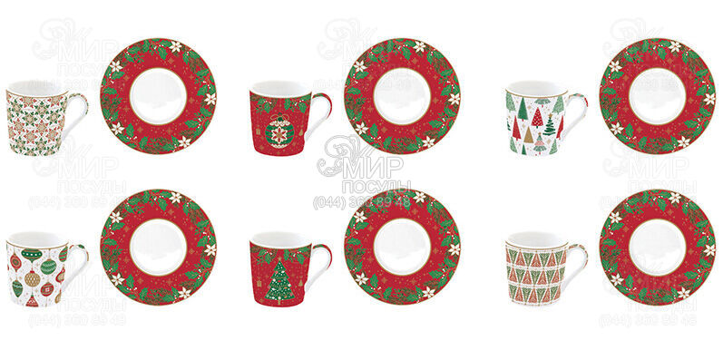 Мир посуды - Столовая посуда - Чашки - Наборы кофейных чашек - Набор чашек для кофе с блюдцами Jinge Bells 100мл R0126#JING
