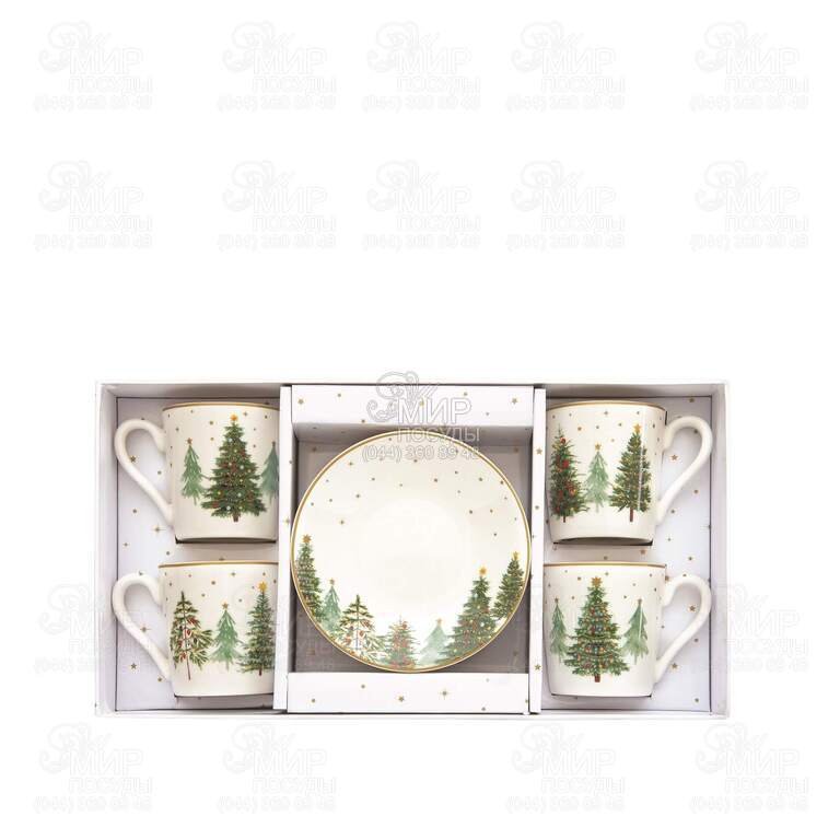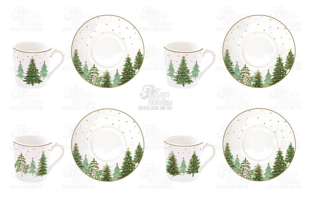 Мир посуды - Столовая посуда - Чашки - Наборы кофейных чашек - Набор чашек дли кофе с блюдцами Festive Trees 100мл R1475#FTRE