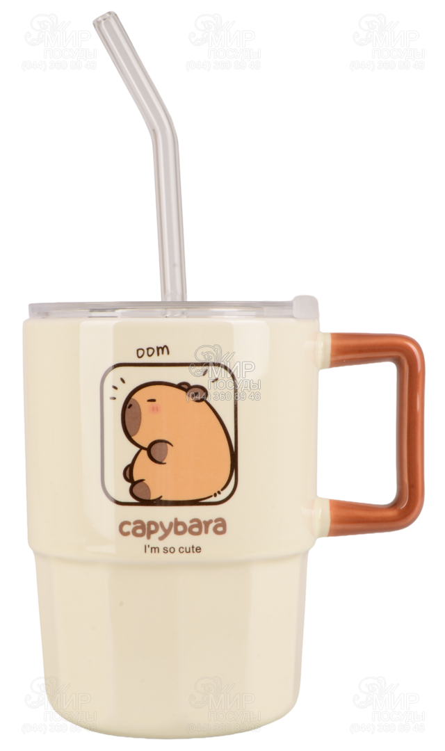 Мир посуды - Столовая посуда - Чашки - Кружки - Кружка с крышкой и трубочкой Capybara Time 400мл B060376