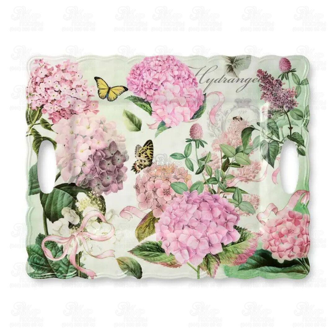 Мир посуды - Столовая посуда - Блюда - Блюда прямоугольные - Блюдо с ручками Букет Гортензий 48х38см 34835