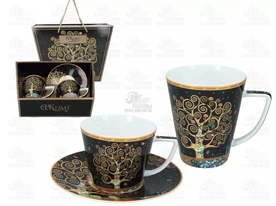 Мир посуды - Столовая посуда - Чашки - Чайные чашки - Чашка для чая с блюдцем + кружка Густав Климт Древо жизни 230/400мл 532-3400