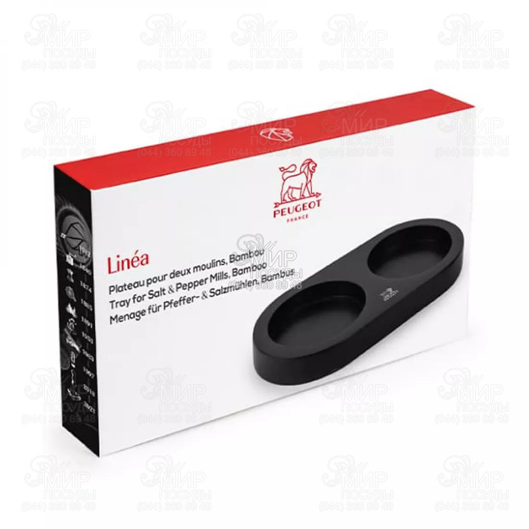 С помощью бамбуковой подставки Linе можно стильно хранить и демонстрировать мельницы для соли и перца от Peugeot. Изделие представлено в классическом матовом черном оттенке, который будет элегантно сочетаться с большинством цветов и украшений мельниц Peugeot. Подставка предотвращает образование остатков соли и перца на рабочей поверхности или столе, а также ее легко чистить влажной тряпкой.
