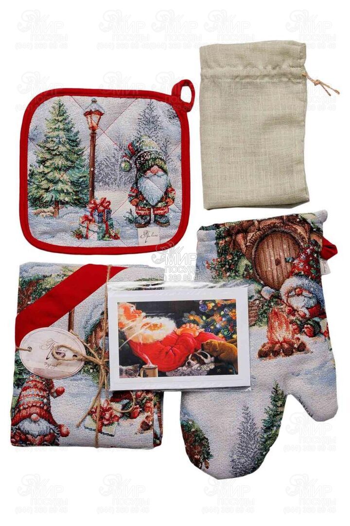 Мир посуды - Кухонные аксессуары - Рукавицы, прихватки, фартуки - Набор текстиля для кухни Рождественский костер 2251960165010