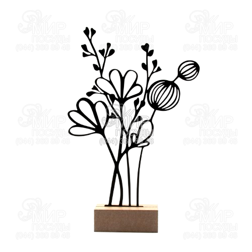 Декоративная фигурка Bouquet – это элегантное интерьерное украшение, сочетающее в себе современный дизайн, натуральные материалы и минималистическую эстетику. Изделие выполнено в виде изящного букета из черных металлических цветов, размещенных на стильной деревянной подставке, что создает гармоничный контраст текстур и цветов. Она идеально подходит для оформления гостиной, спальни, кабинета, прихожей или офисного пространства. Благодаря сдержанной цветовой гамме фигурка легко вписывается в интерьеры в стилях лофт, минимализм, модерн, скандинавский или индустриальный.