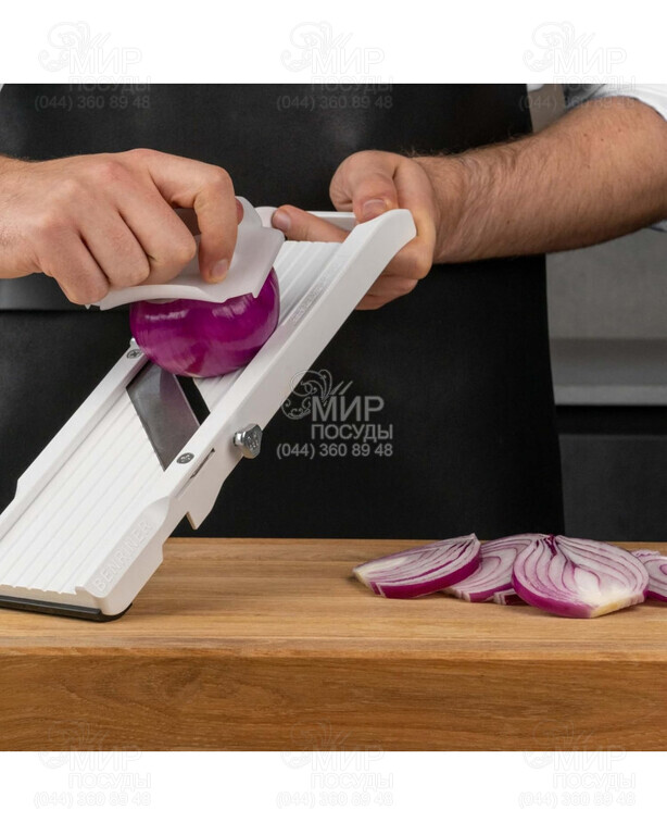 Овощерезка Premium от японского бренда Benriner изготовлена из высококачественных материалов. Продуманная конструкция снижает риск травм. После каждого использования снимите лезвие и промойте теплой водой с моющим средством для посуды. Не мойте овощерезку в посудомоечной машине.