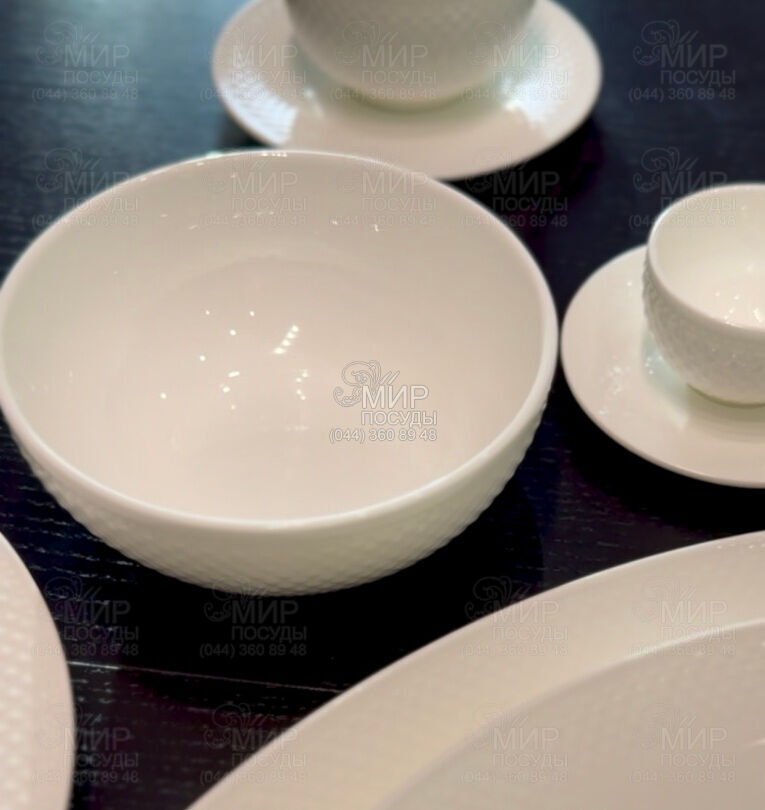 Серия Geneva из костного фарфора от немецкого бренда Weiss – это воплощение сдержанной элегантности и безупречного вкуса. Чистый белый цвет, изящные формы и деликатный рельеф по краю придают посуде благородный вид и универсальность. Серия гармонично сочетает классические традиции и современный минимализм, поэтому уместно выглядит как в ежедневной сервировке, так и во время праздничных событий. Изделия из костного фарфора отличаются особой тонкостью, легкостью и прочностью. Поверхность гладкая, приятная на ощупь, с мягким естественным блеском, подчеркивающим чистоту линий и безупречнцю белизну материала.