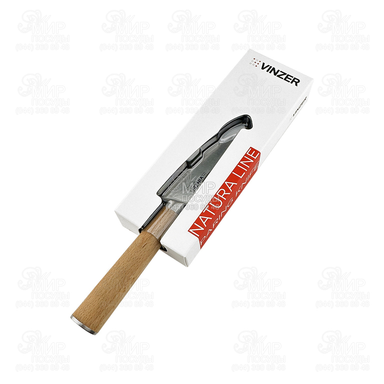 Нож Natura Line от бренда Vinzer изготовлен из высокоуглеродистой стали, устойчивой к механическим повреждениям и коррозии. Деревянная ручка удобна в использовании, имеет эргономичный дизайн и не скользит во время работы. Лезвие имеет клиновидное сечение, поэтому режущая кромка долгое время сохраняет остроту и не нуждается в частых заточках. Нож позволит тонко и аккуратно нарезать разные продукты.