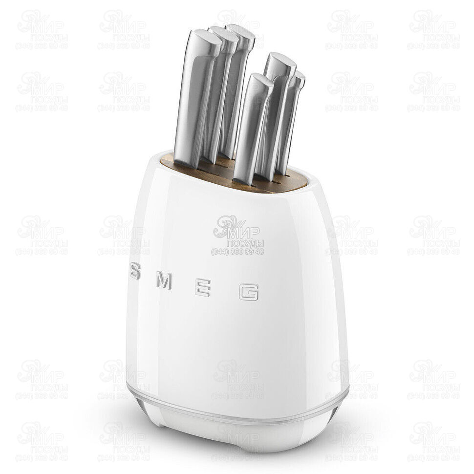 Набор ножей 50's Retro Style от итальянского бренда Smeg обеспечивает производительность и дизайн, ожидаемый от Smeg. Набор включает в себя ножевой блок из акации с порошковым покрытием корпуса и ножей с немецким лезвием из нержавеющей стали и ручкой из нержавеющей стали.