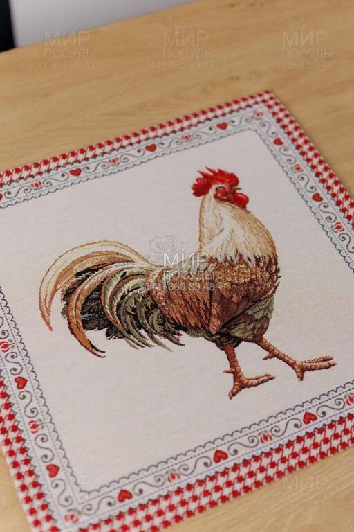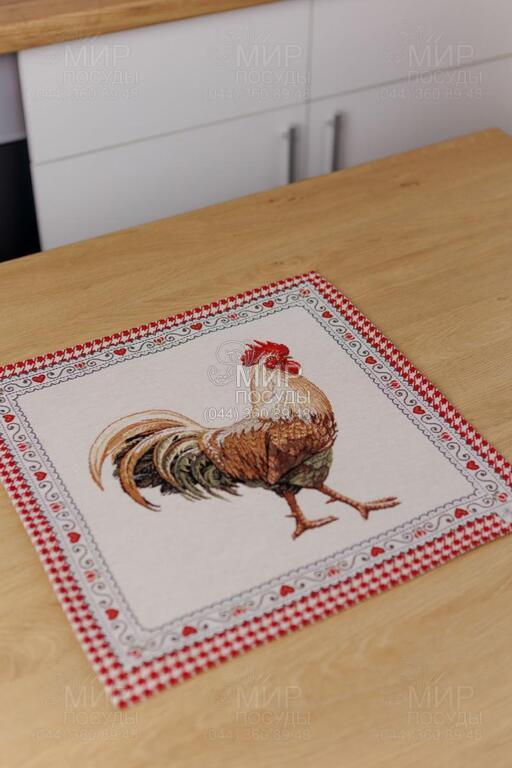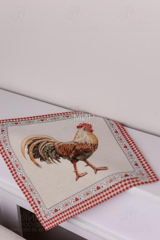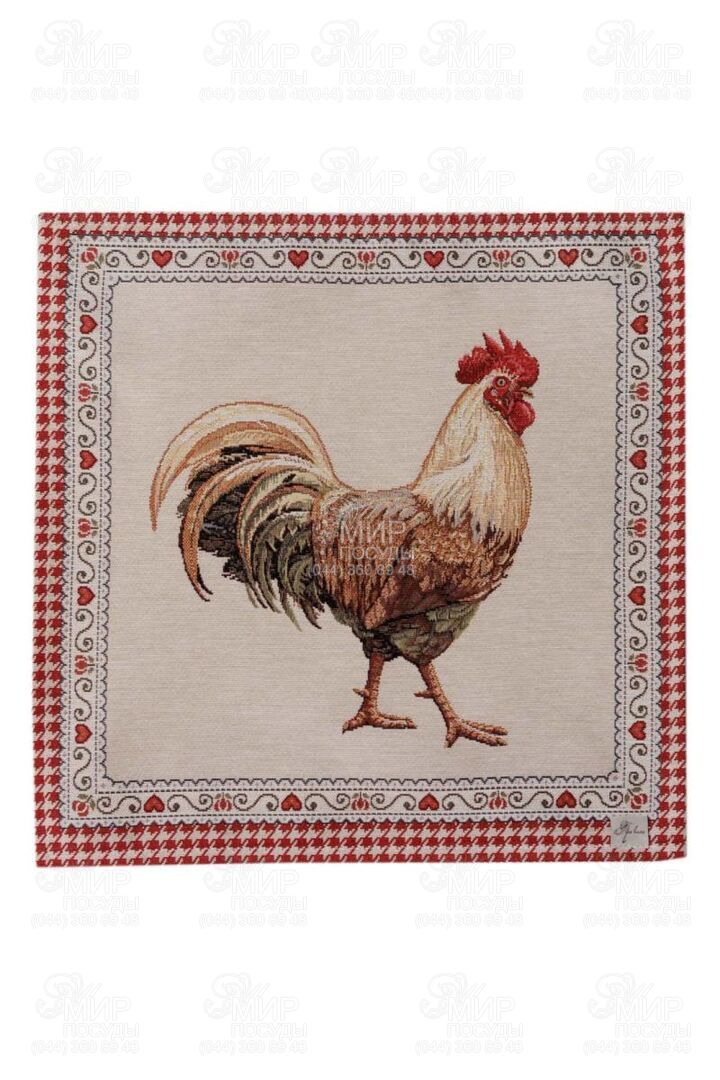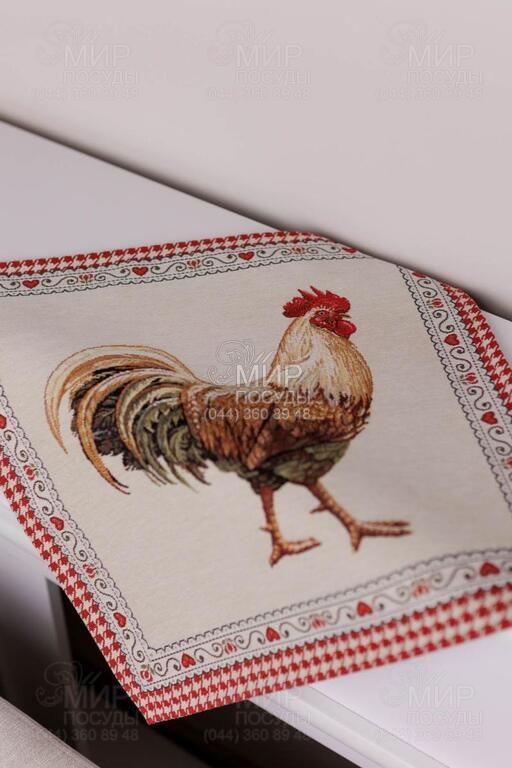 Коллекция гобеленового текстиля Благополучие от украинского бренда Прованс, с колоритным петухом, наполняет кухню атмосферой тепла, ароматом свежей выпечки и ощущением настоящего домашнего уюта. Дизайн вдохновлен фермерской тематикой: выразительные изображения петуха и курочки, мелкий орнамент в клетку, декоративные бордюры и теплая красно-молочная гамма создают атмосферу домашнего тепла и гастрономического уюта. Центральные композиции гармонично дополняются орнаментальными рамками и мелкими тематическими деталями, благодаря чему каждое изделие выглядит завершенным и декоративно насыщенным. Насыщенный красный цвет придает акцент, делая текстиль ярким элементом кухонного интерьера. Гобеленовое переплетение формирует объемный, глубокий рисунок, не наносимый поверх ткани, а сотканный в ее структуре. Благодаря этому изделия отличаются плотностью, долговечностью и износостойкостью, сохраняя форму и цвет даже при активном использовании. В серии представлены скатерти, салфетки, декоративные наволочки, прихватки, дорожки и кухонные аксессуары, легко комбинирующиеся между собой, создавая цельный ансамбль в стиле кантри или прованс.