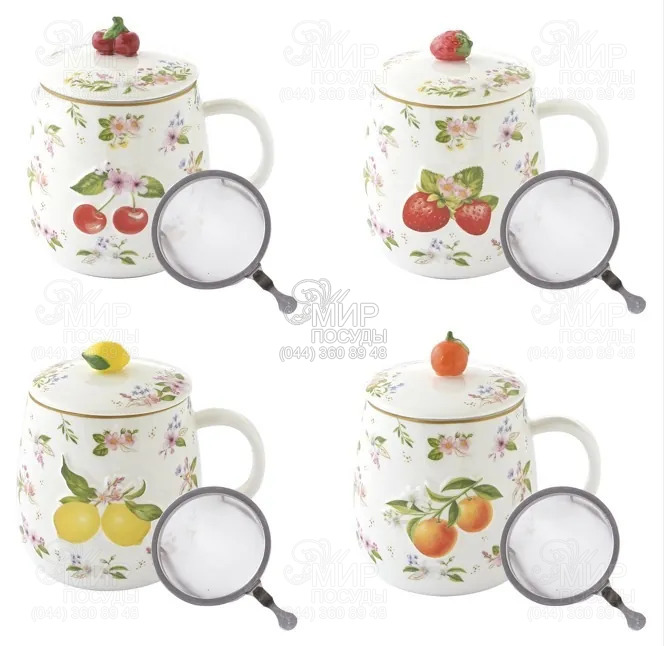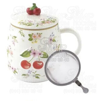 Мир посуды - Столовая посуда - Чашки - Кружки - Кружка с крышкой и ситечком Fancy Fruit Вишня 450мл R3421#FANF_2