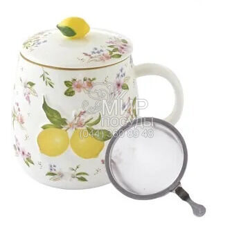 Мир посуды - Столовая посуда - Чашки - Кружки - Кружка с крышкой и ситечком Fancy Fruit Лимон 450мл R3421#FANF_3