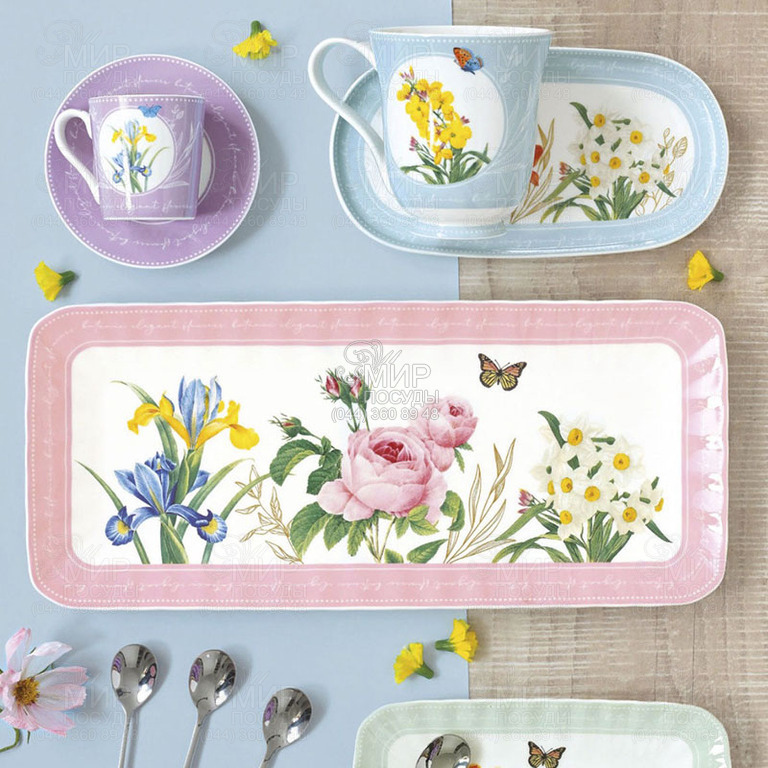 Серия Royal Blossom от итальянского бренда Easy Life – это утонченная симфония цветов, цвета и элегантности, воплощенная в благородном фарфоре. Коллекция вдохновлена красотой цветущей природы и классическими традициями европейской сервировки, сочетая в себе нежность, гармонию и изысканный стиль. Каждое изделие украшено художественными флористическими композициями – роскошные цветы, тонкие ветки и деликатные бабочки создают эффект живого рисунка. Пастельные оттенки — нежно-розовый, голубой, мятный и лавандовый — подчеркивают легкость дизайна и придают посуде особую воздушность и шарм. Отдельного внимания заслуживают декоративные детали: изящные надписи, щепетильные бордюры и мягкие цветные обрамления, которые придают композиции завершенности и премиального звучания. Такая посуда выглядит дорого, эстетично и гармонично в любой сервировке.