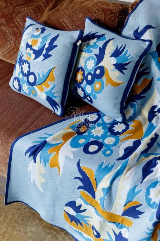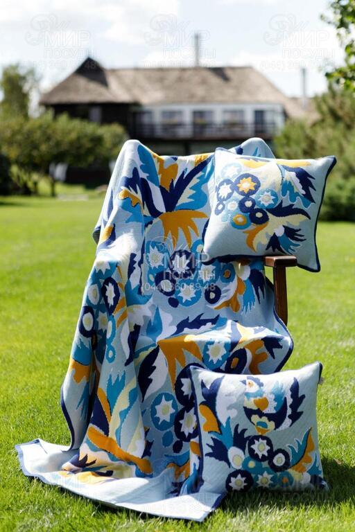 Вязаный плед от украинского производителя Прованс несомненно порадует своего обладателя. Плед можно использовать как предмет интерьера, накрывая мебель, а также как одеяло для дневного сна или отдыха. Плед в украинском стиле Самчиковские мотивы с коллекции Наследие - тепло, берущее начало в сердце Украины, история, родившаяся в украинских селах и городках, мастерских народных художников и на страницах старинных орнаментов. Самчиковская роспись - насыщенные синие, желтые и белые оттенки на нежном фоне, а цветочные композиции в вазах – это символ красоты, гармонии и благосостояния, который украшал дома Подолья и Волыни. Плед с этим орнаментом наполняет простор праздничностью и светом.