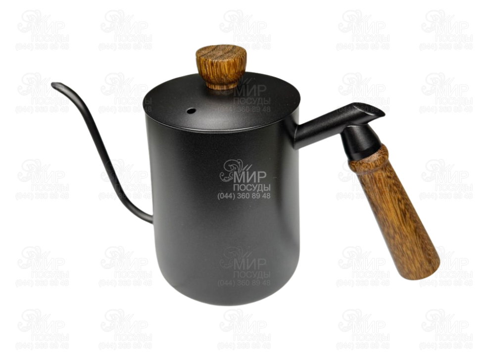 Кофейник ZH – это премиальный инструмент, созданный для любителей кофе, стремящихся достичь идеального вкуса в каждой чашке. Его обмысленный дизайн сочетает в себе функциональность профессионального бариста с изысканной эстетикой современного дома. Тонкий, удлиненный носик "gooseneck" (гусиная шея) обеспечивает невероятно точную и стабильную струю воды. Вы можете контролировать скорость, направление и объем вливания с точностью до миллиметра, что является критическим для правильной экстракции кофе. Уникальная рукоятка из натурального дерева имеет идеальную форму для комфортного хвата. Дерево не нагревается, обеспечивая безопасное и приятное использование. Корпус изготовлен из высококачественной пищевой нержавеющей стали, устойчива к коррозии, не впитывает запахов и не влияет на вкус кофе. Матовое черное порошковое покрытие выглядит современно, дорого и профессионально, оно также устойчиво к царапинам и отпечаткам пальцев. Крышка плотно прилегает и имеет удобную деревянную ручку для безопасного открывания. Специальное отверстие на крышке служит для выхода пара и позволяет вставить термометр для контроля температуры воды.
