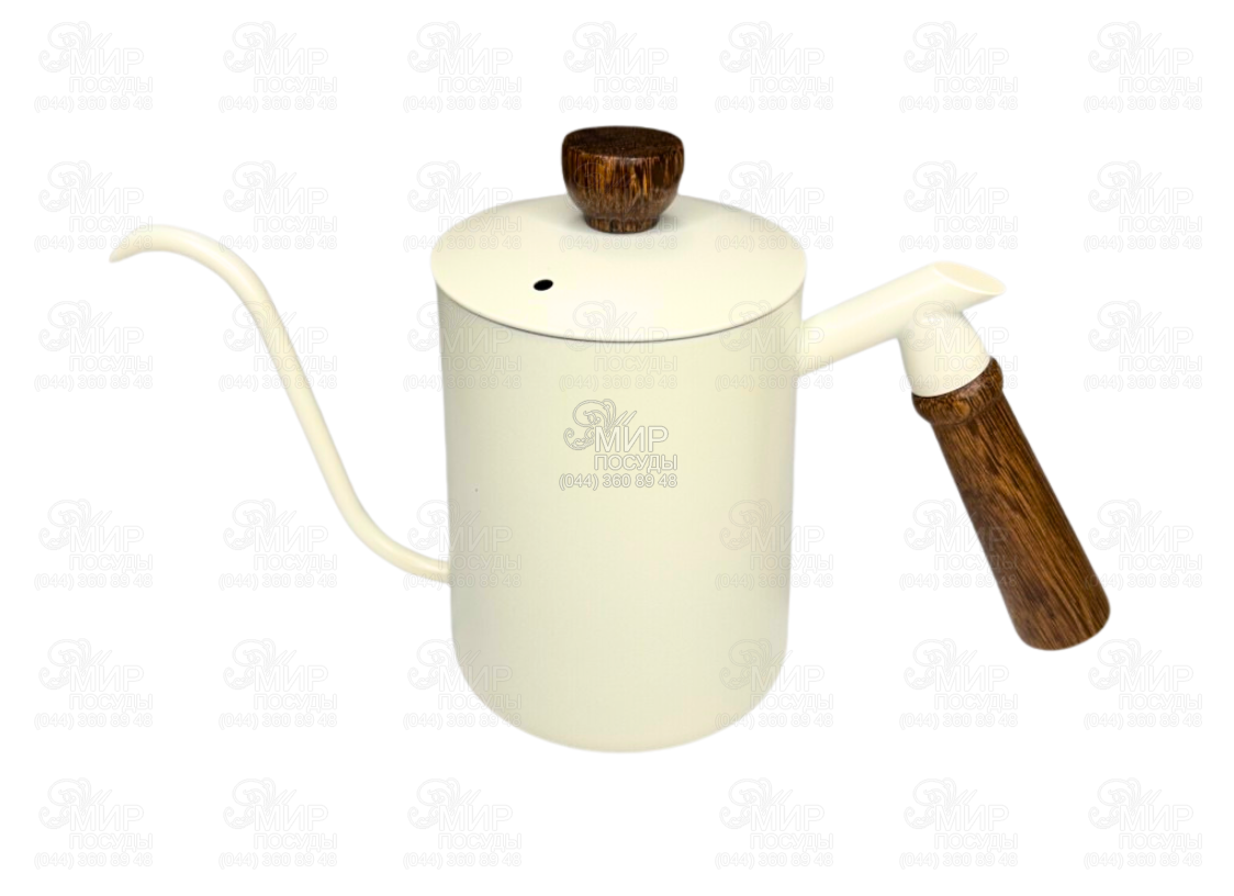 Кофейник ZH – это премиальный инструмент, созданный для любителей кофе, стремящихся достичь идеального вкуса в каждой чашке. Его обмысленный дизайн сочетает в себе функциональность профессионального бариста с изысканной эстетикой современного дома. Тонкий, удлиненный носик "gooseneck" (гусиная шея) обеспечивает невероятно точную и стабильную струю воды. Вы можете контролировать скорость, направление и объем вливания с точностью до миллиметра, что является критическим для правильной экстракции кофе. Уникальная рукоятка из натурального дерева имеет идеальную форму для комфортного хвата. Дерево не нагревается, обеспечивая безопасное и приятное использование. Корпус изготовлен из высококачественной пищевой нержавеющей стали, устойчива к коррозии, не впитывает запахов и не влияет на вкус кофе. Матовое белое порошковое покрытие выглядит современно, дорого и профессионально, оно также устойчиво к царапинам и отпечаткам пальцев. Крышка плотно прилегает и имеет удобную деревянную ручку для безопасного открывания. Специальное отверстие на крышке служит для выхода пара и позволяет вставить термометр для контроля температуры воды.