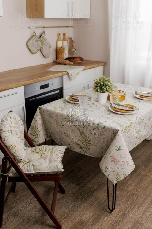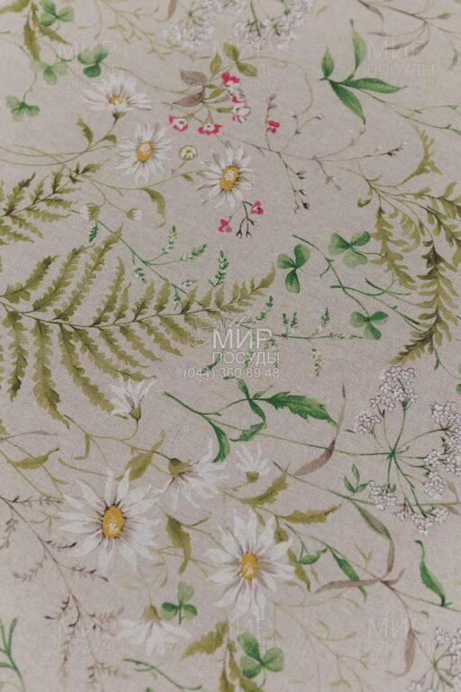 Скатерть серии Herbal от известного украинского производителя Прованс – это сочетание изящных линий папоротника, ромашек и мелких соцветий на приятном фоне натурального оттенка. Дизайн смотрится легко и ненавязчиво, гармонируя как со светлыми, так и деревянными поверхностями. Текстиль бренда Прованс производится из итальянских тканей высокого качества, материал имеет оптимальную плотность, благодаря чему скатерть красиво драпируется по углам стола и сохраняет свою форму. Цвета остаются насыщенными, а принт не теряет четкости даже после продолжительного использования. Скатерть отлично подходит как для ежедневных семейных обедов, так и для праздничной сервировки стола.