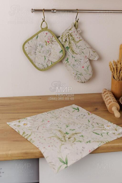 Прихватка серии Herbal от известного украинского производителя Прованс – это сочетание изящных линий папоротника, ромашек и мелких соцветий на приятном фоне натурального оттенка. Дизайн смотрится легко и ненавязчиво, гармонируя как со светлыми, так и деревянными поверхностями. Текстиль бренда Прованс производится из итальянских тканей высокого качества, материал имеет оптимальную плотность, благодаря чему сохраняет свою форму. Цвета остаются насыщенными, а принт не теряет четкости даже после продолжительного использования.