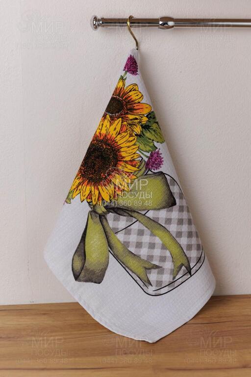 Мир посуды - Домашний интерьер - Кухонные полотенца - Полотенце кухонное вафельное Подсолнухи в банке 34х58см 4823093478442