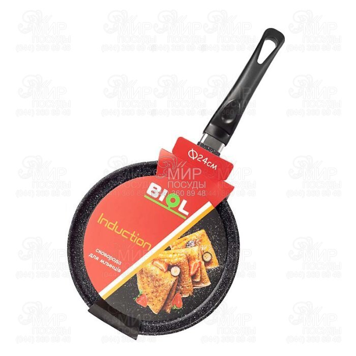 Сковорода для блинов от украинского производителя Биол изготовлена из алюминия. Поверхность сковороды покрыта современным антипригарным покрытием. Данное покрытие не содержит ПФОК (Перфтороктановая кислота) и является безопасным для здоровья при любых режимах использования. Также антипригарное покрытие позволяет использовать минимум жиров в процессе приготовления пищи. Удобная ручка обладает покрытием Soft-touch это специальное эластичное резиноподобное матовое лакокрасочное покрытие для удобного удержания сковороды.