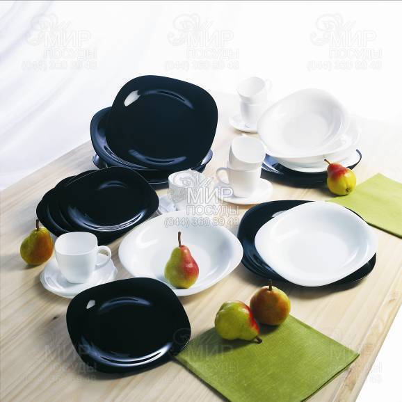 Набор тарелок от французского производителя Luminarc изготовлен из стеклокерамики. Комплект бело-черного цвета станет настоящим украшением обеденного стола.