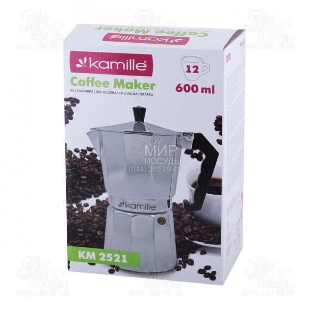 Гейзерная кофеварка Kamille создана для приготовления великолепного кофе по современным итальянским технологиям. Используя ее на любых кухонных плитах (за исключением индукционных), за считанные минуты Вы сможете насладиться чашкой ароматного, хорошо проваренного кофе.