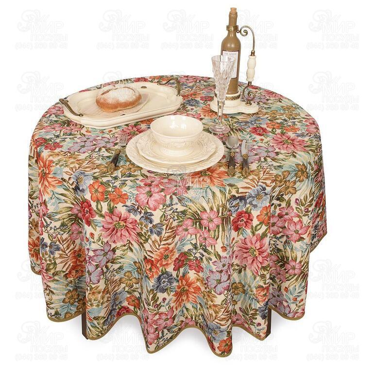 Мир посуды - Домашний интерьер - Домашний текстиль - Скатерти - Скатерть с тефлоновым покрытием Цветущий сад beige 160см EmelBlaATMantel-D160DAC