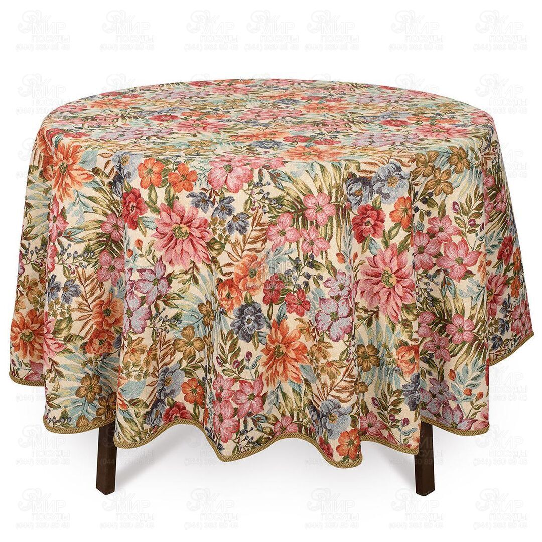 Мир посуды - Домашний интерьер - Домашний текстиль - Скатерти - Скатерть с тефлоновым покрытием Цветущий сад beige 220см EmelBlaATMantel-D220DAC