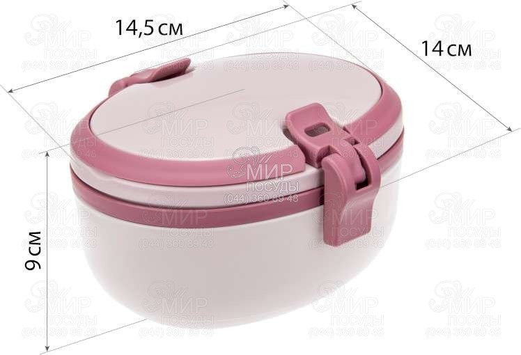 Характеристика: висота 9 см, ширина 14 см, довжина 14,5 см, об'єм 250 мл + 350 мл
