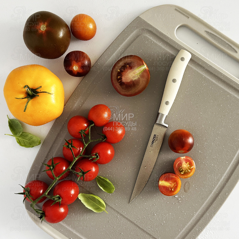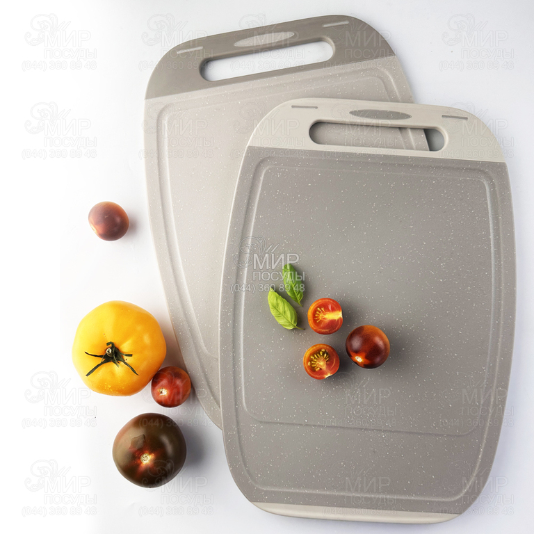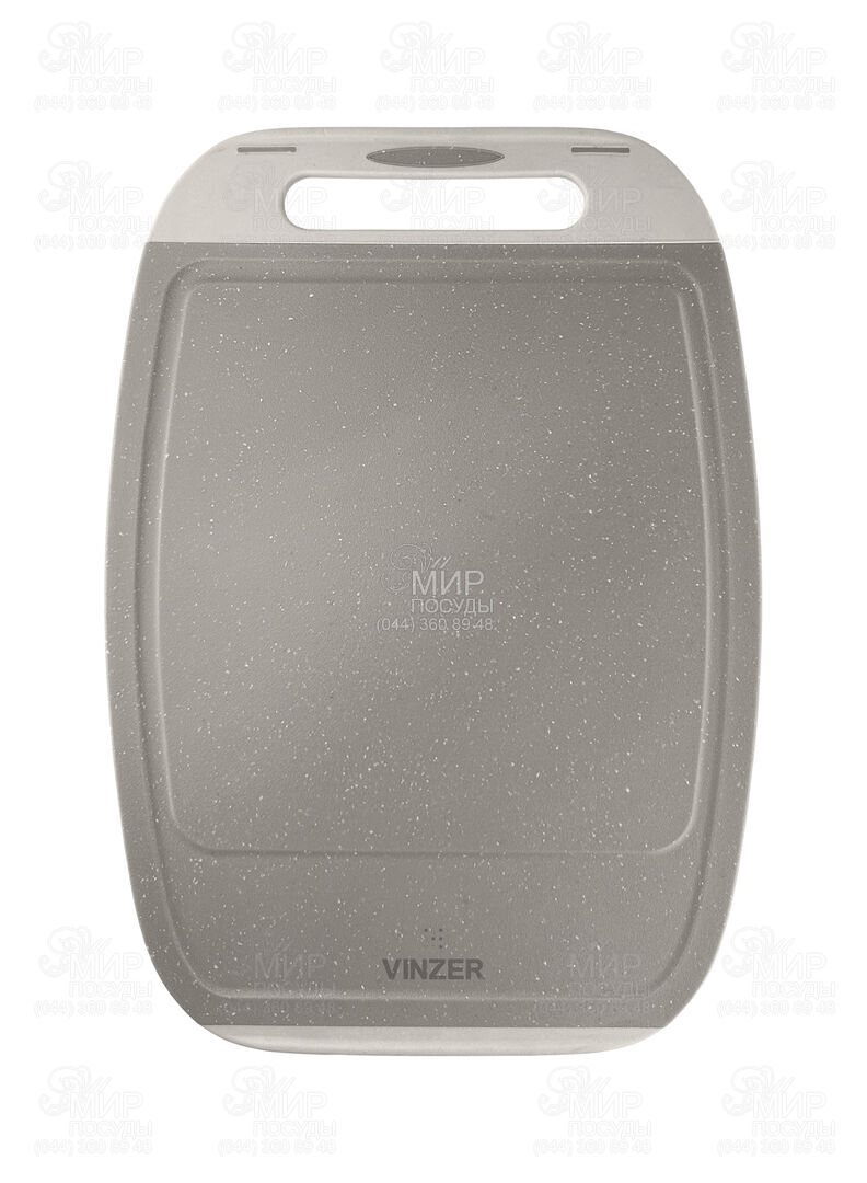 Обробна дошка Vinzer – незамінний предмет на кожній кухні, який використовується щодня для нарізки, шинкування та подрібнення продуктів. Дошка виготовлена з харчового пластику високої якості без вмісту небезпечних компонентів. Матеріал легко миється, не вбирає вологу і запахи. Нековзна поверхня забезпечує зручне та безпечне використання, а також зберігає лезо ножа гострим. Дошка оснащена прогумованою вставкою по краях для надійної фіксації на столі та має канавку для стікання рідини.