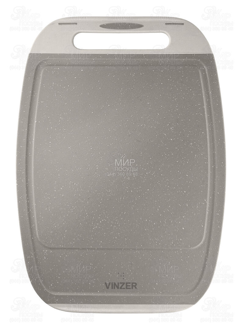 Обробна дошка Vinzer – незамінний предмет на кожній кухні, який використовується щодня для нарізки, шинкування та подрібнення продуктів. Дошка виготовлена з харчового пластику високої якості без вмісту небезпечних компонентів. Матеріал легко миється, не вбирає вологу і запахи. Нековзна поверхня забезпечує зручне та безпечне використання, а також зберігає лезо ножа гострим. Дошка оснащена прогумованою вставкою по краях для надійної фіксації на столі та має канавку для стікання рідини.