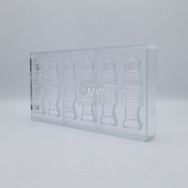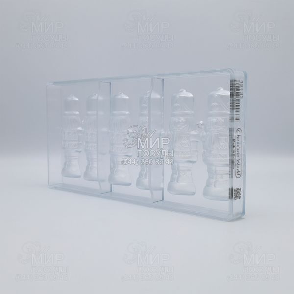 Форма для шоколаду від світового бренду Chocolate World використовується для виготовлення цукерок у вигляді Лускунчика. Після кожного використання важливо акуратно промити формочку теплою водою або ж протерти матеріалами, які не містять ворсу, при цьому не залишаючи залишків какао – масла та подряпин