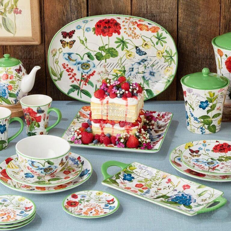 Чайник заварювальний Оранжерея від американського бренду Certified International виготовлений із надміцної кераміки та покритий зносостійкою глазур'ю. Ємність прикрашена унікальним і яскравим квітковим візерунком, доповненим витонченими метеликами та бабками. Ідеально підходить як для повсякденного використання, так і для особливих випадків.