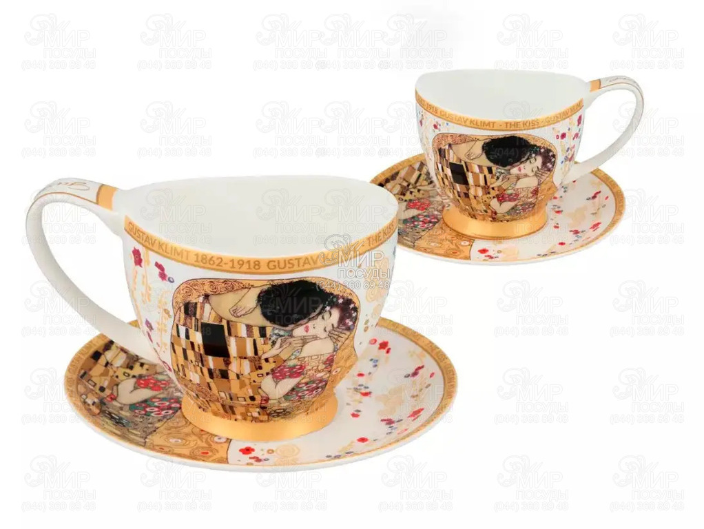 Набір чашок для чаю з блюдцями Густав Клімт Поцілунок 250мл...