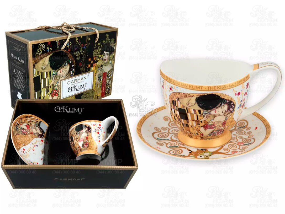 Світ посуду - Столовий посуд - Чашки - Чайні чашки - Чашка для чаю з блюдцем Густав Клімт Поцілунок 350мл 532-3052