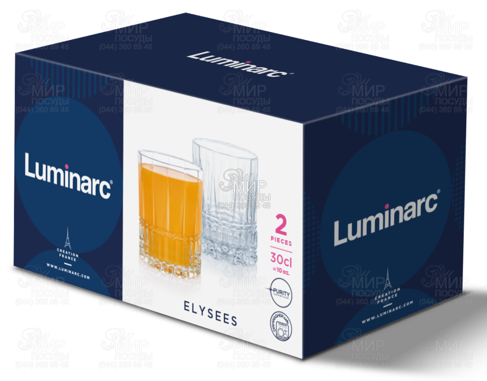 Набір склянок Elysees від Luminarc виготовлений із дуже гладкого, ударостійкого прозорого скла, створеного за спеціальними технологіями плавлення. Практичні ємності відмінно виглядатимуть як за святковим, так і за повсякденним столом. Крім простого плавлення, скляний посуд Luminarc проходить особливий процес зміцнення, який дозволяє виробам бути міцнішими і міцнішими за звичайний посуд у три рази.
