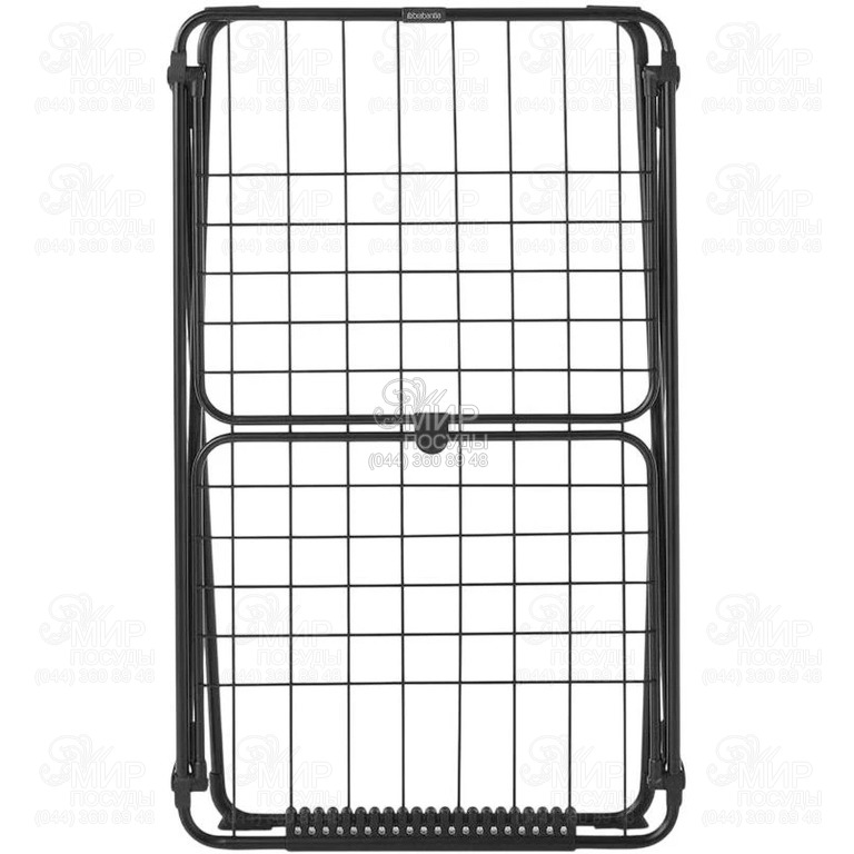 Сушарка для білизни HangOn Drying Rack Too від Brabantia має 18 метрів сушильної поверхні та тримач для дрібних речей, таких як шкарпетки. Завдяки додатковому простору між (широкими) дротиками білизна легше розвішувати і вона швидше сохне. Ідеально підходить для великих речей, таких як рушники. Після сушіння її можна скласти для зберігання, транспортувальний фіксатор утримує секції разом і служить гачком для вішалок.