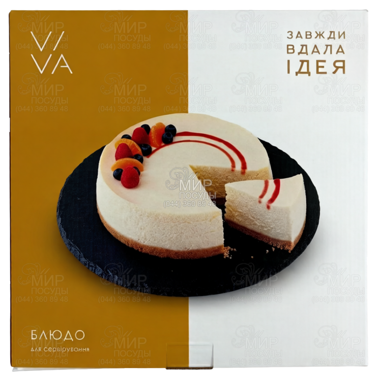 Тортівниця Viva призначена для подачі головного десерту, підкреслюючи його красу та важливість. Виготовлена зі сланцю, з ніжкою, що крутиться, для зручного сервірування і подачі десерту. Мити вручну, не використовуючи грубі абразиви.