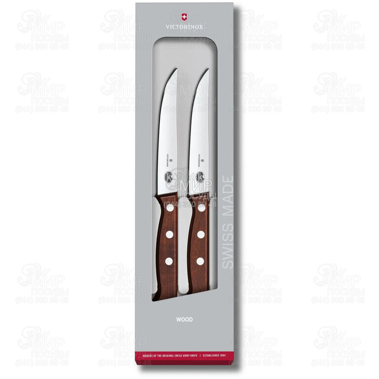 Ножі серії Wood від швейцарського бренду Victorinox виготовлені із нержавіючої сталі. Ідеальні для використання як столового ножа, щоб легко нарізати на рівні й акуратні шматочки м'ясні страви, піцу або пиріг, так і для ролі універсального ножа, щоб почистити і нарізати овочі, фрукти. Зручне руків'я ідеально лягає в долоню і не ковзає, тому працювати з інструментом - одне задоволення. Усі використані матеріали мають неймовірну стійкість до зношування і тішитимуть вас бездоганною якістю багато років. Щоб максимально довго зберігати естетичний вигляд, ножі з дерев'яними ручками не рекомендуємо мити в посудомийній машині. Ретельно вимийте ножа вручну і висушіть.
