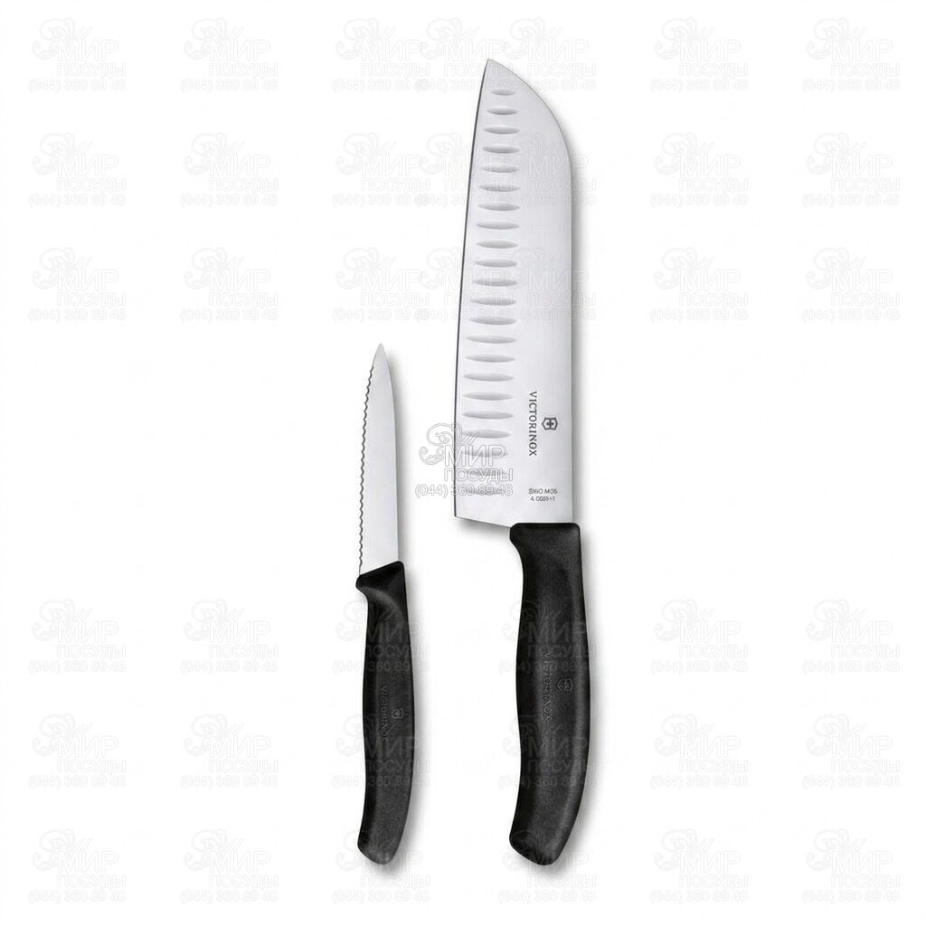 Швейцарський набір ножів Swiss Classic від Victorinox виготовлений із нержавіючої сталі. Ніж для чищення овочів та фруктів чудово впорається з такими точними завданнями, як чищення, видалення серцевини та делікатна нарізка. Ніж-сантоку - справжній ніж шеф-кухаря, який віртуозно впорається з нарізкою кубиками та подрібненням, а завдяки рифленому лезу зручно нарізати м'ясо, жирну рибу, сир чи овочі без прилипання продукта до леза. Цей незамінний дует ножів забезпечить ефективність на вашій кухні.