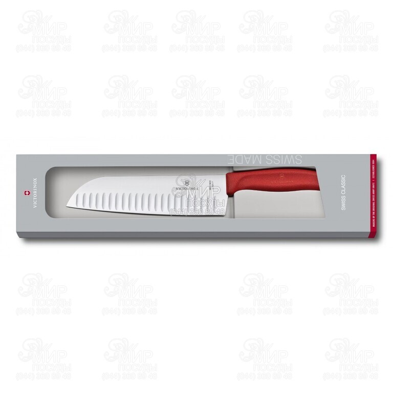 Світ посуду - Кухонний посуд - Кухонні ножі - Поодинокі ножі - Ніж Сантоку Swiss Classic Red 17см Vx68521.17G