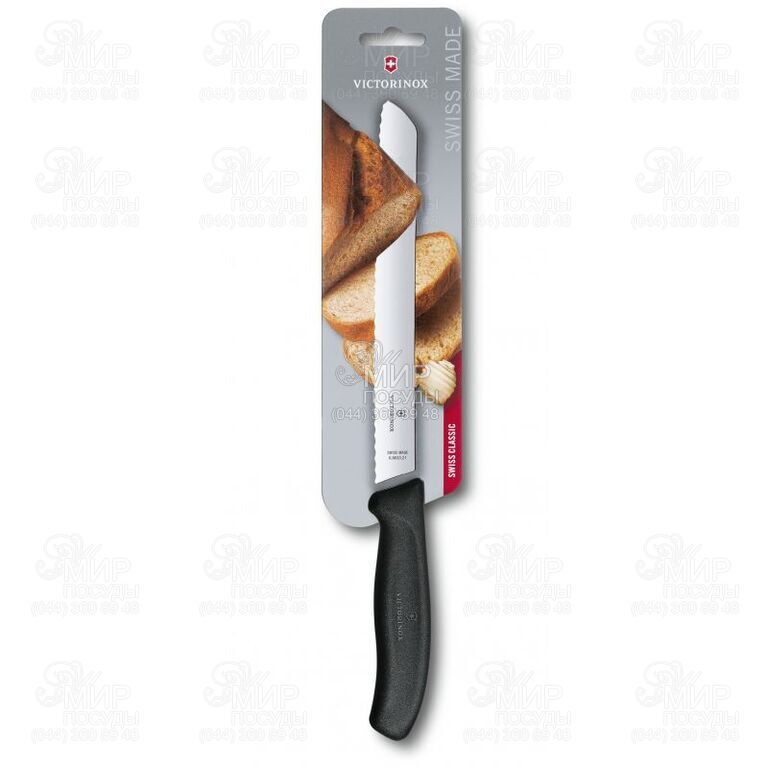 Ніж Bread Swiss Classic від Victorinox виготовлений із високоякісної нержавіючої сталі. Оснащений довгим серейторним лезом, яке легко справляється як з м'якою випічкою, так і з щільними хлібними скоринками. Хвиляста крайка робить розріз акуратним і рівним, не мнучи м'якушку. Завдяки оптимальній довжині леза ніж підходить для багетів, батонів і здоби. Лезо зберігає гостроту тривалий час, а зручна ергономічна рукоятка забезпечує надійний, комфортний хват. Такий ніж стане практичним помічником як на домашній, так і на професійній кухні.