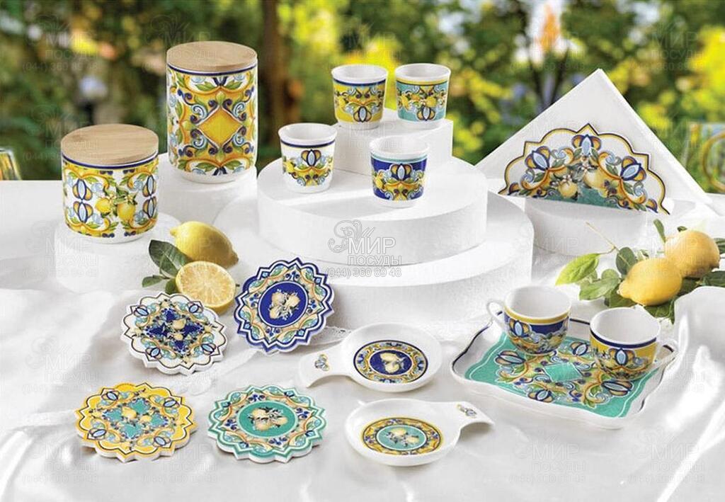 Серія Citrus від Brandani — справжнє втілення середземноморського настрою та сонячної енергії. Натхненна традиційними орнаментами південної Італії, вона поєднує глибокі насичені відтінки синього з жовтими акцентами лимонів і витонченими декоративними візерунками. Кожен елемент виглядає як маленький витвір мистецтва, що миттєво перетворює сервірування на святкову подію. Гармонійне поєднання кольорів і орнаментів створює ефект живої, динамічної композиції, яка додає столу характеру, тепла та стилю. Дана колекція ідеально підходить як для повсякденного використання, так і для особливих моментів, коли хочеться створити атмосферу відпочинку десь на узбережжі Італії.