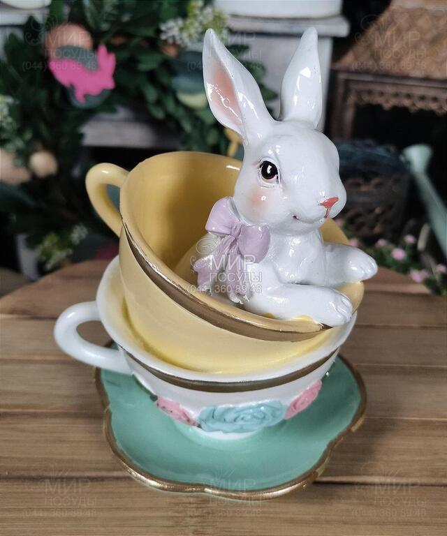 Світ посуду - Домашній інтер'єр - Скульптури - Статуетка Чаювання з кроликом Великодній сюрприз 16см 50156