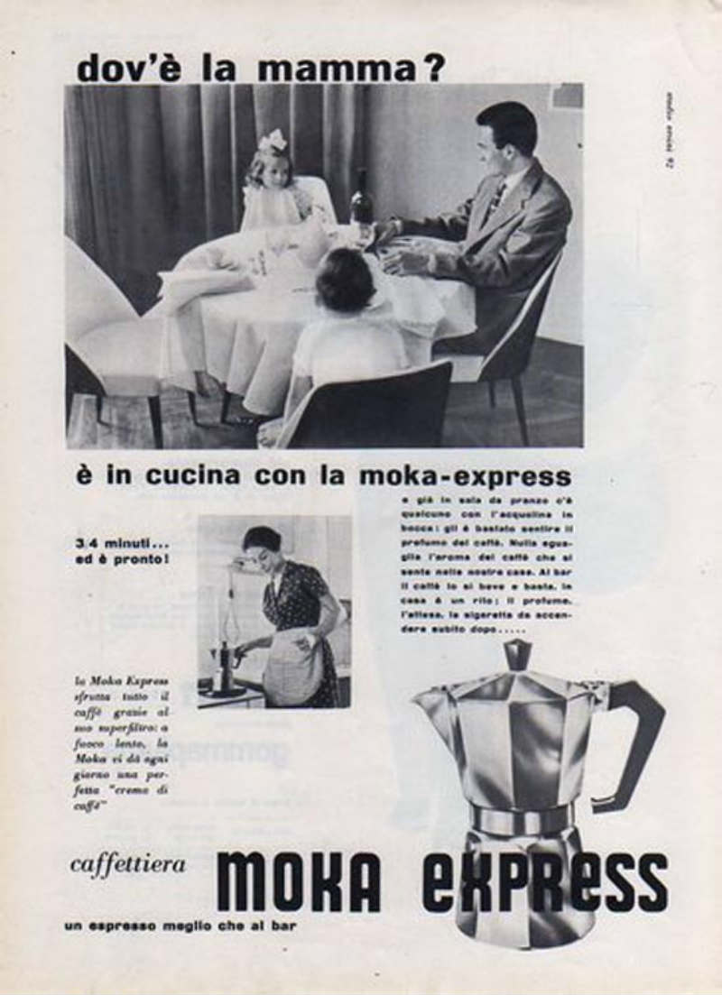 Предвоенные годы были достаточно сложными для экономической ситуации Италии. Учитывая низкое материальное положение большинства населения, когда не все тогда могли позволить себе пойти в бар и выпить чашку кофе, Альфонсо Биалетти, желая увеличить продажи кофеварки, придумывает рекламный слоган для своего изобретения: «In casa un espresso come al bar», что дословно означает: «Дома эспрессо так же хорош, как в баре». Таким образом, в конце 1930-х ему удалось продать почти 10000 экземпляров своей модели.